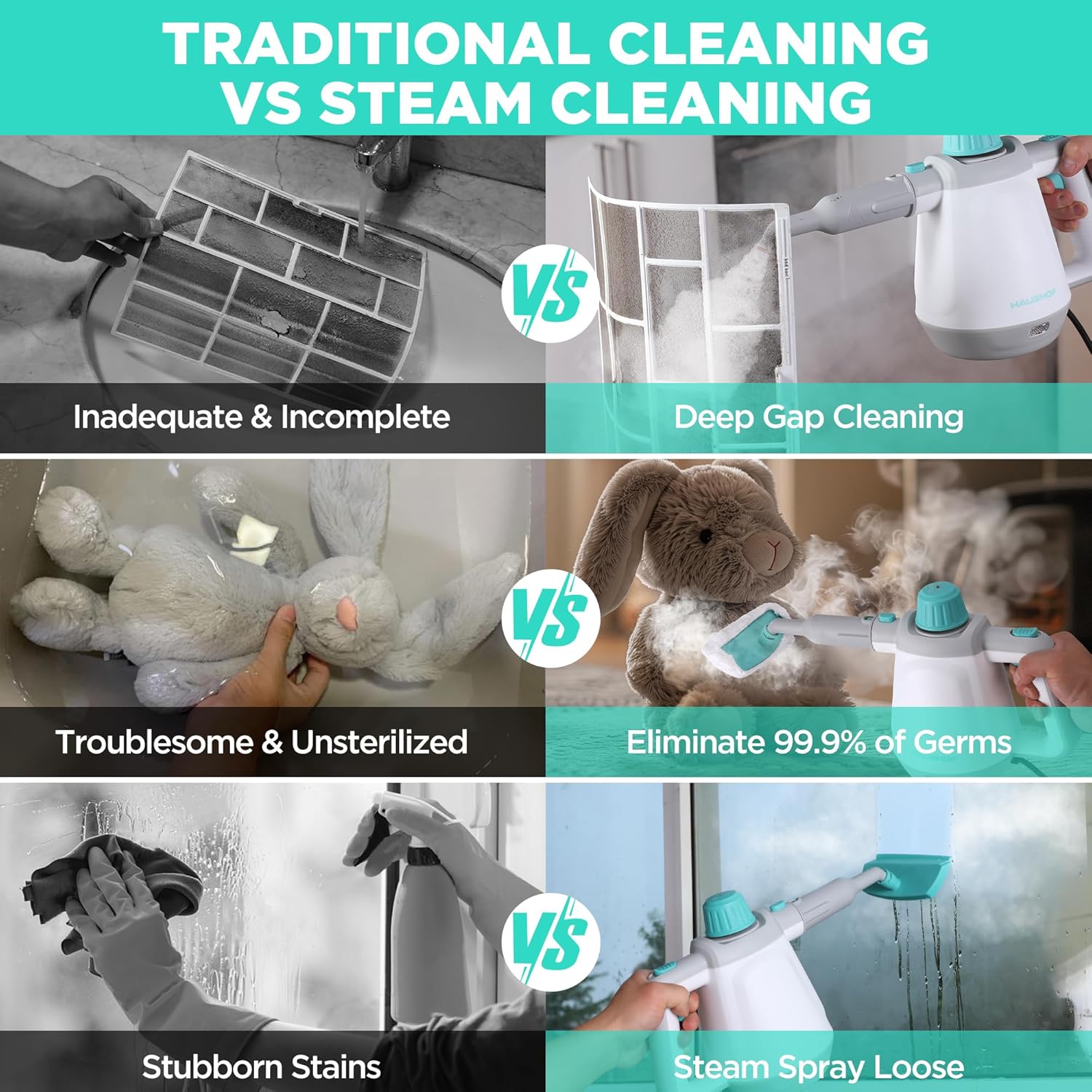 - Chemical-free cleaning uses only water and heats up to 221°F (105°C).
