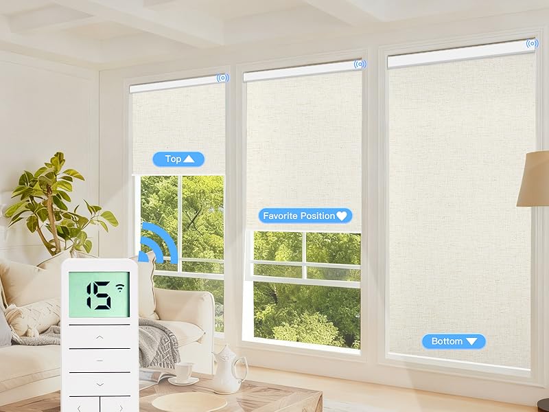- Cordless motorized design is safer around kids and pets than corded shades.